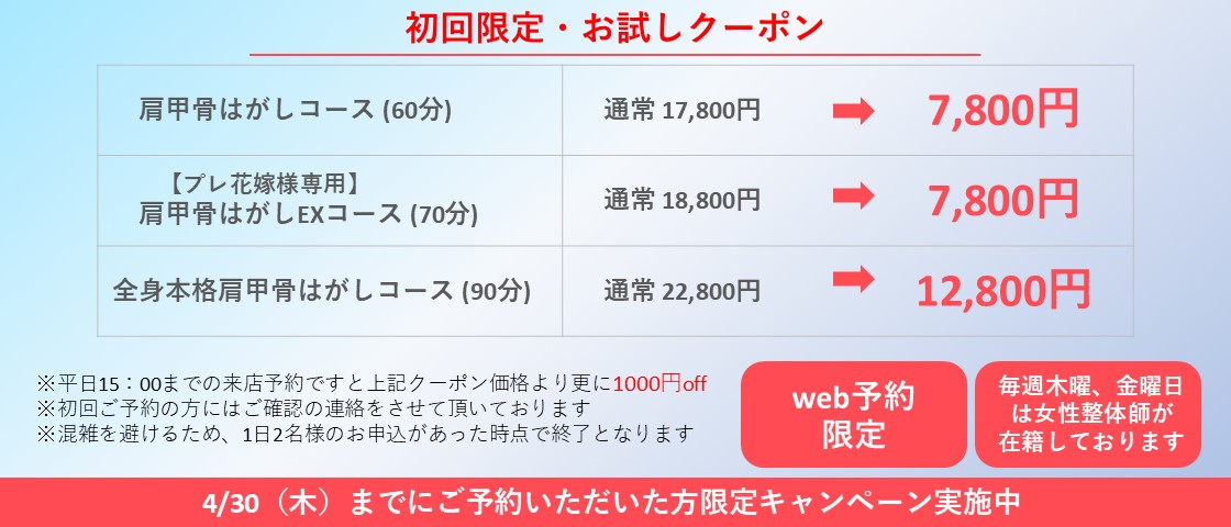・業界初の花嫁さんに向けた肩甲骨はがし専門店